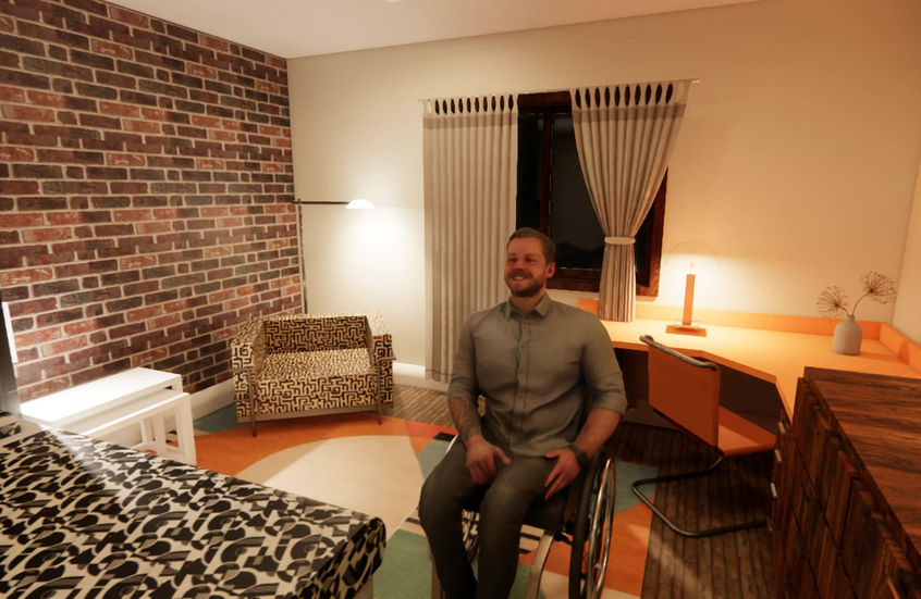 By taking a project originally created in SketchUp/Enscape in 2021 and improving it in Revit/Enscape a few years later, I was able to showcase the development of my design and programmatic skills. In this project I created two calming Bauhaus inspired hotel guest rooms, one standard, and one ADA. The goal was to bring a relaxing environment to those looking for an escape while traveling. With the strategic use of exposed brick, steel, and leather the space encapsulates you in an industrialized setting.